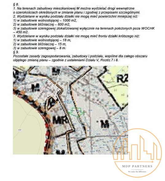 Teren objęty jest Miejscowym Planem Zagospodarowania Przestrzennego (MPZP), który przewiduje zabudowę mieszkaniową jednorodzinną wolnostojącą oraz bliźniaczą.