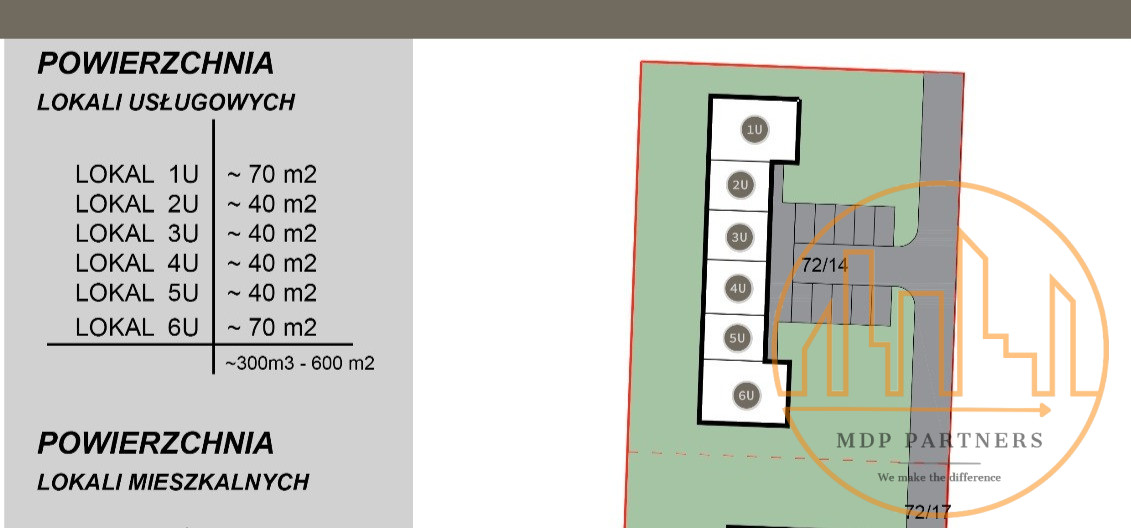 6 lokali usługowych od 40 do 70m2/ 300-600m2 PUU