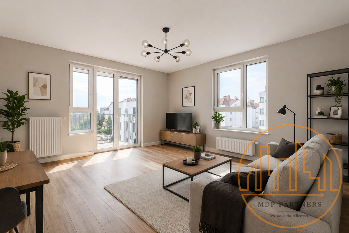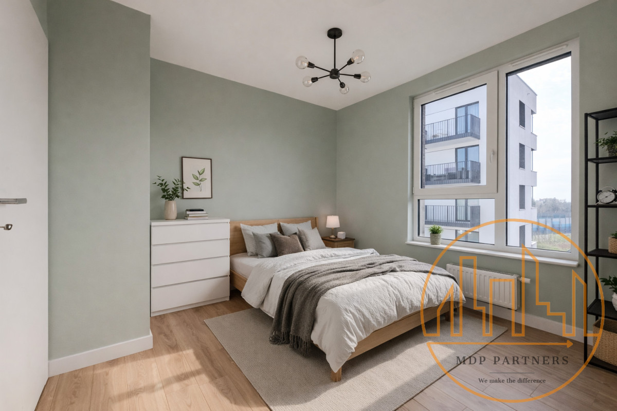 Duże przeszklenia oraz ekspozycja na południowy zachód sprawiają, że mieszkanie jest pełne naturalnego światła od południa aż do wieczora. Balkon to naturalne przedłużenie salonu - idealne miejsce na chwilę dla siebie, niezależnie od pory dnia.